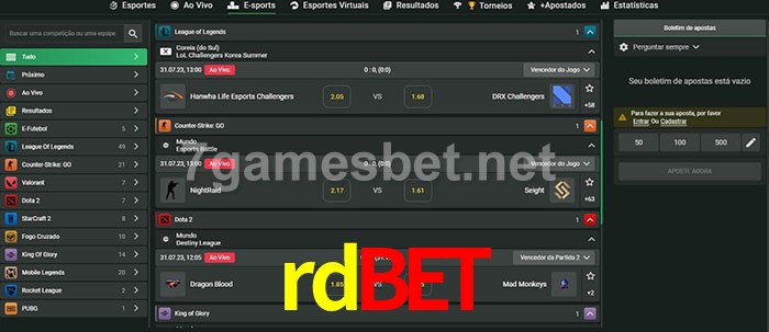 O rdbet oferece uma grande seleção de opções de apostas em e-sports com probabilidades competitivas